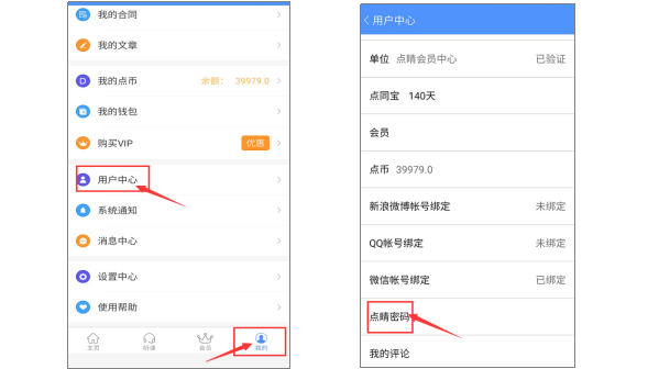 五、学员如何修改信息 1. 点击右下角“我的”,在点击下方“点睛密码”进行密码修改。